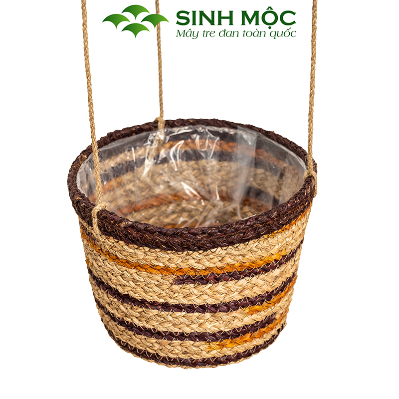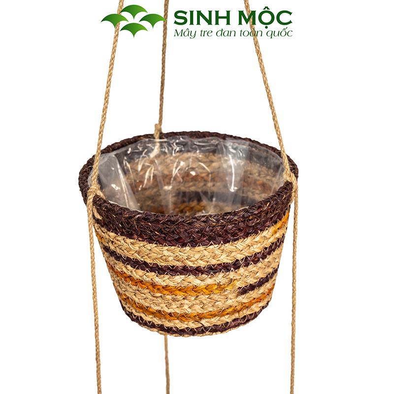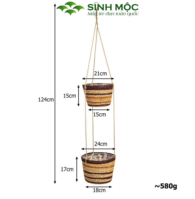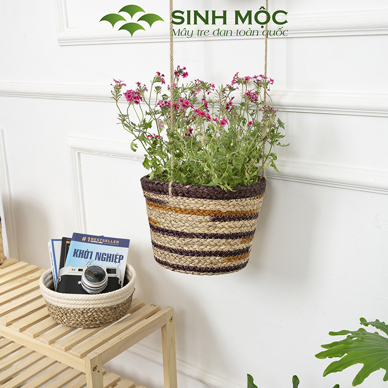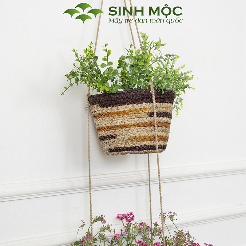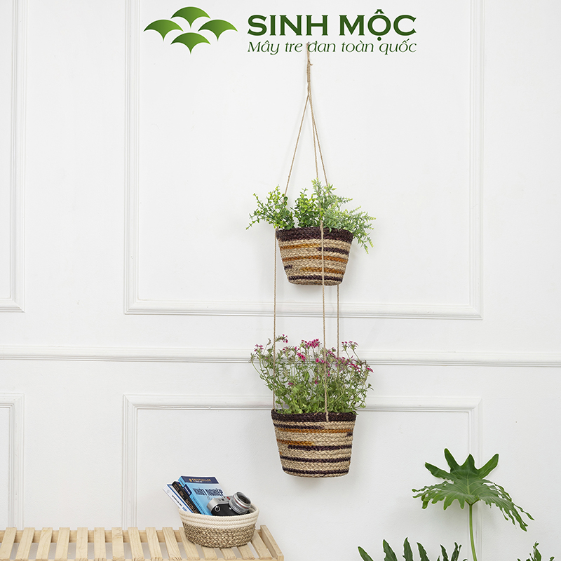 Chậu trồng cây hai tầng, giỏ hoa treo tường, giỏ cói decor, chậu cây trang trí Sinh Mộc - M1014