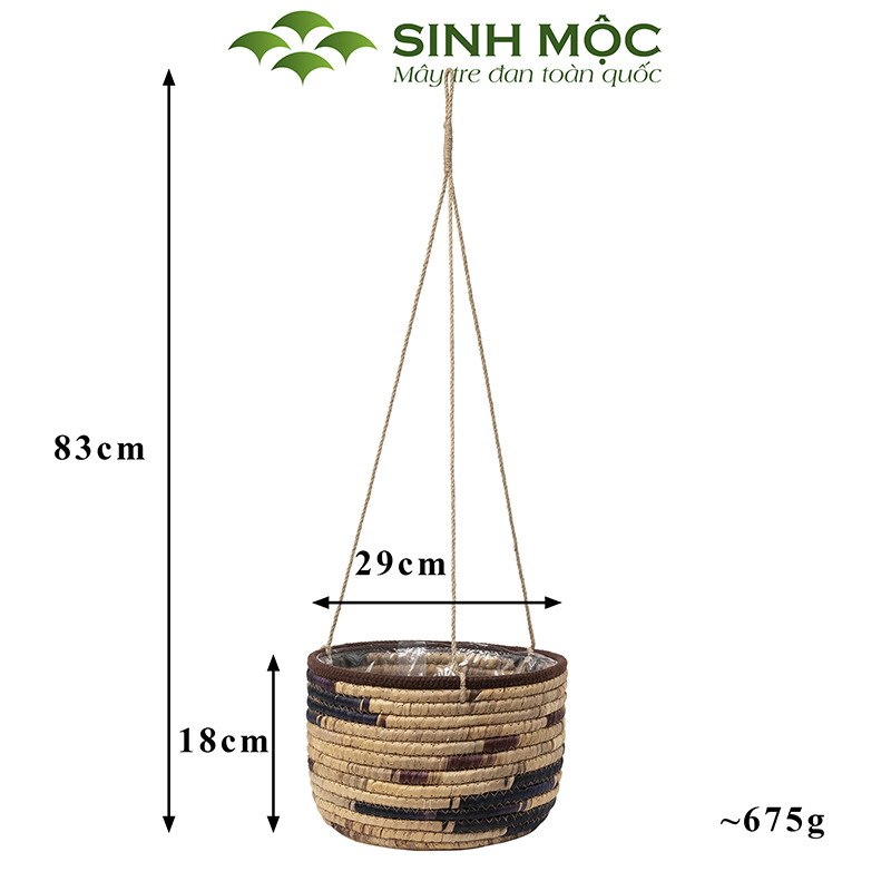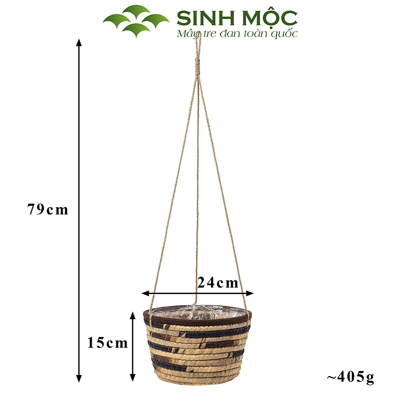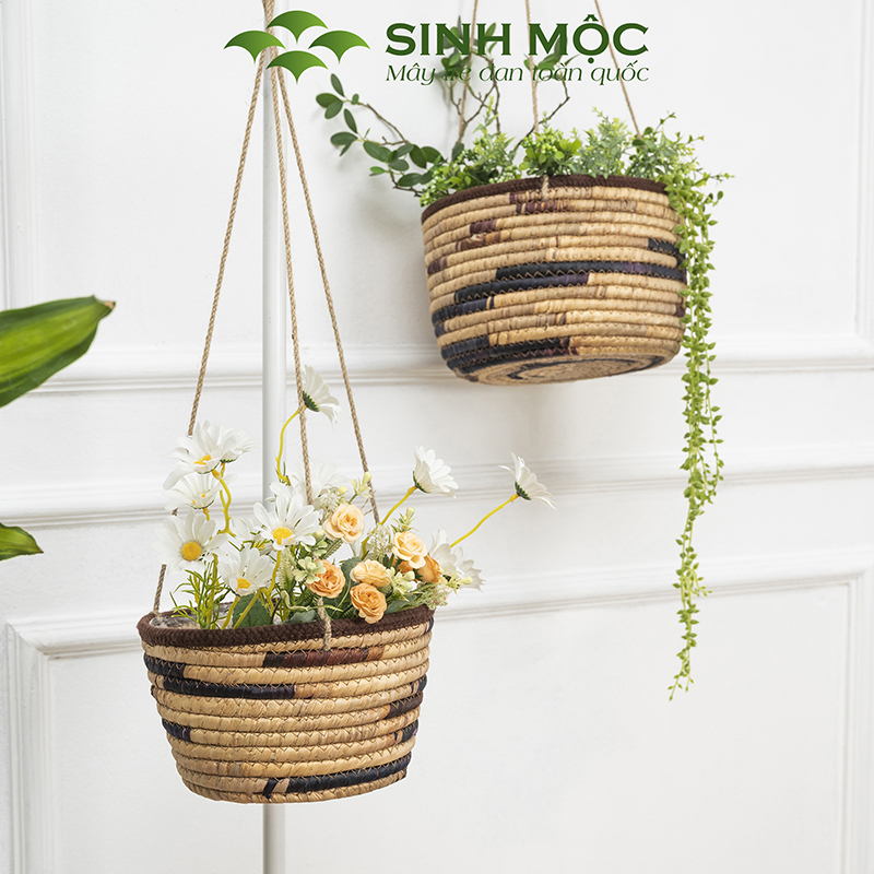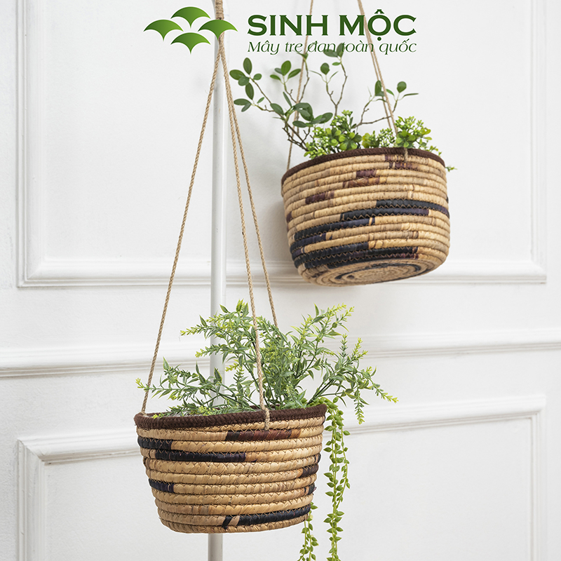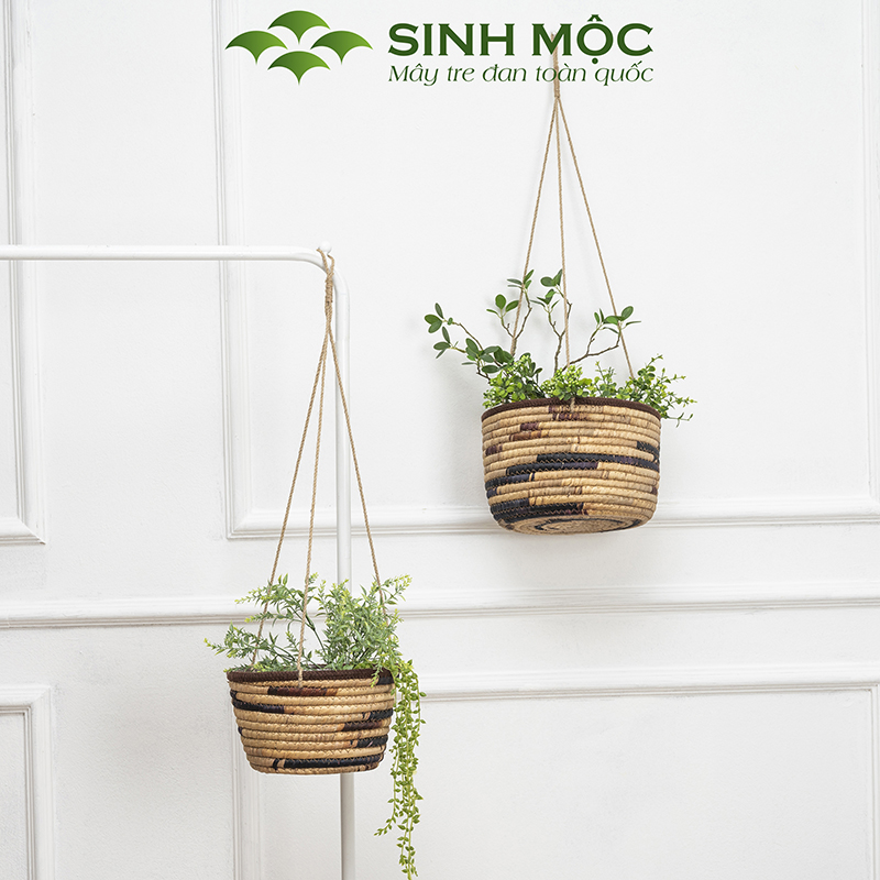 Giỏ lục bình trồng cây lót nilon, chậu trồng cây có quai, giỏ bèo có dây Sinh Mộc - M1009