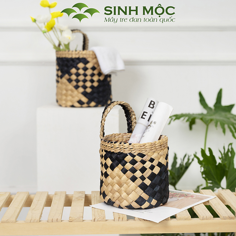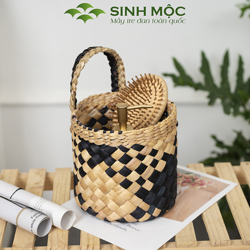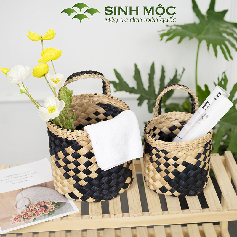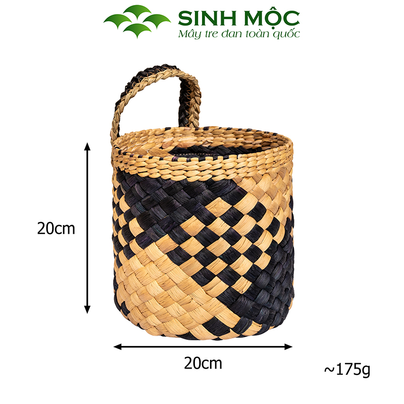 Giỏ bèo caro, giỏ lục bình, giỏ treo tường, decor mây tre đan Sinh Mộc - M1028