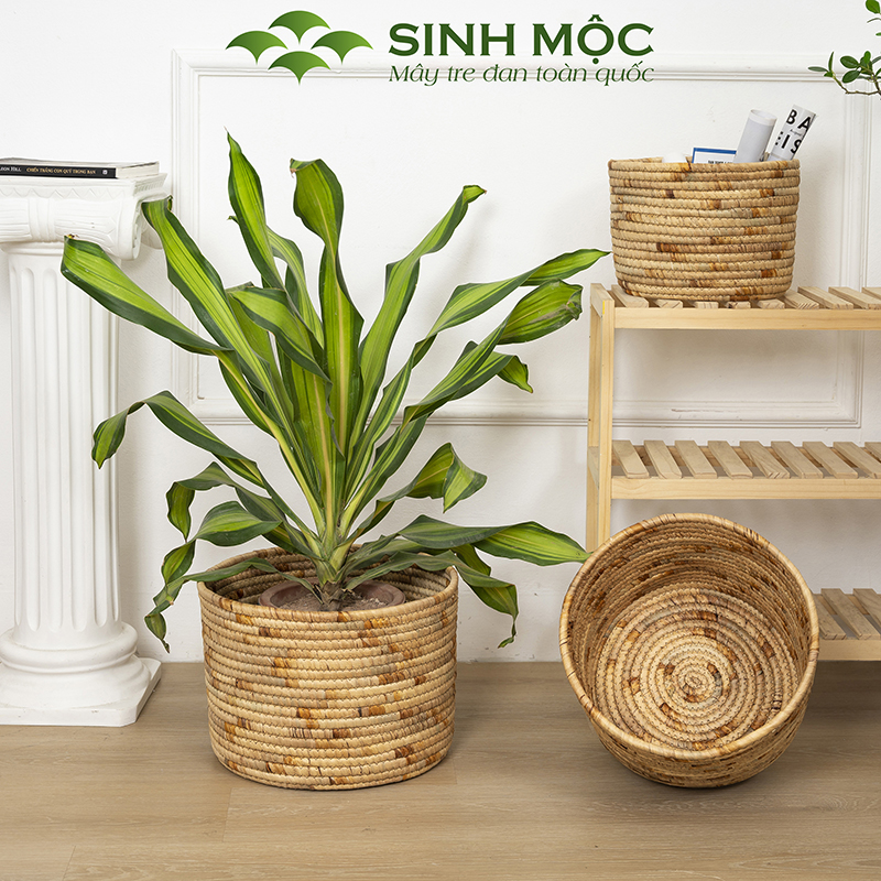 Giỏ đựng đồ đa năng, giỏ lục bình, chậu cây trang trí, decor lục bình, decor phòng khách Sinh Mộc - M1015