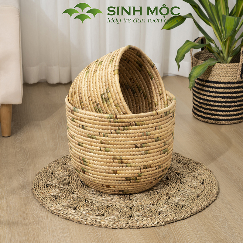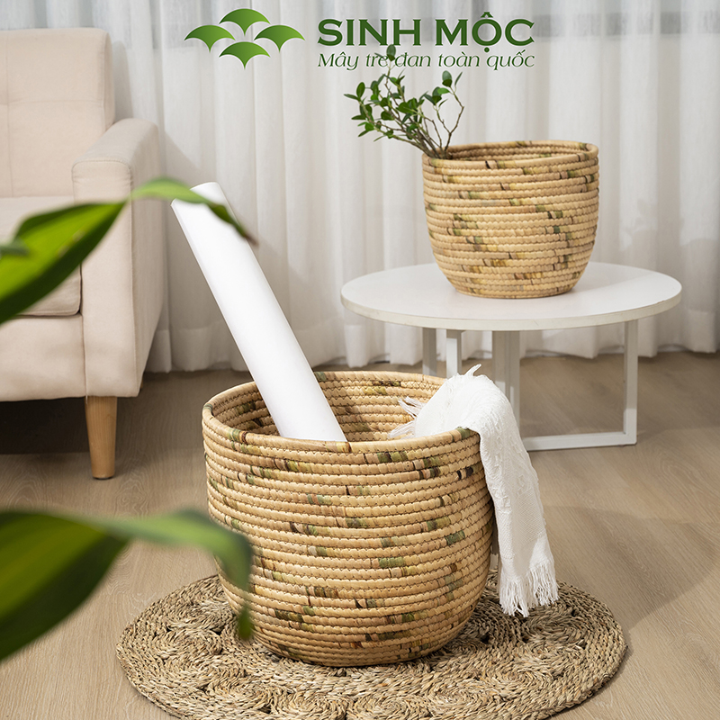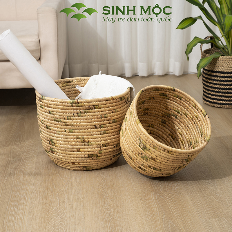 Giỏ lục bình cao cấp, giỏ đựng đồ đa năng, decor lục bình, chậu cây trang trí Sinh Mộc - M1018