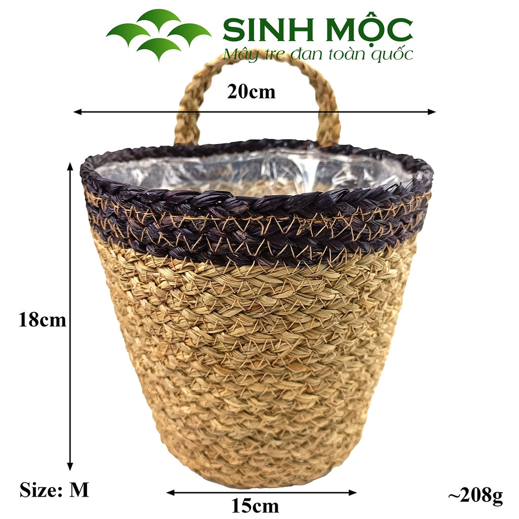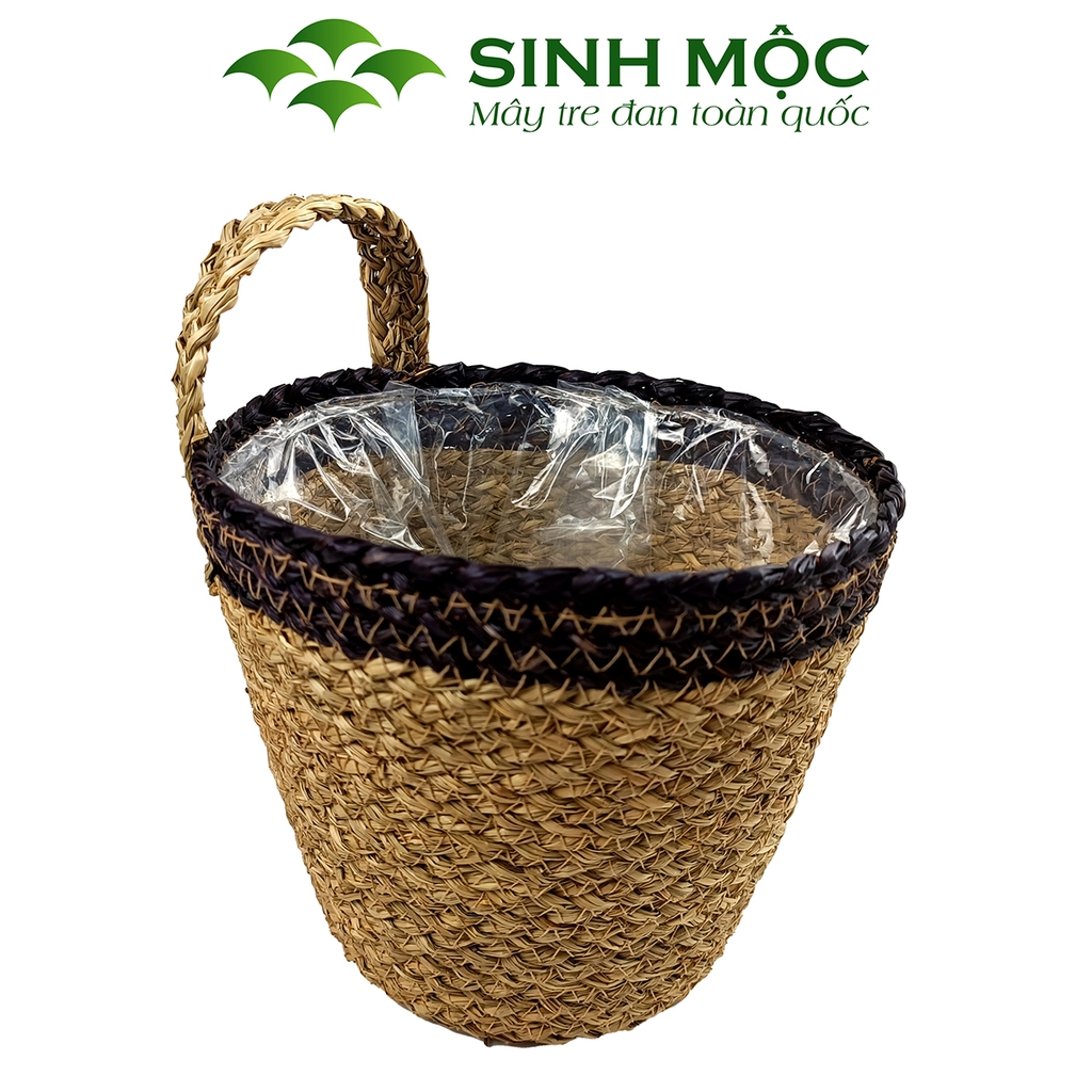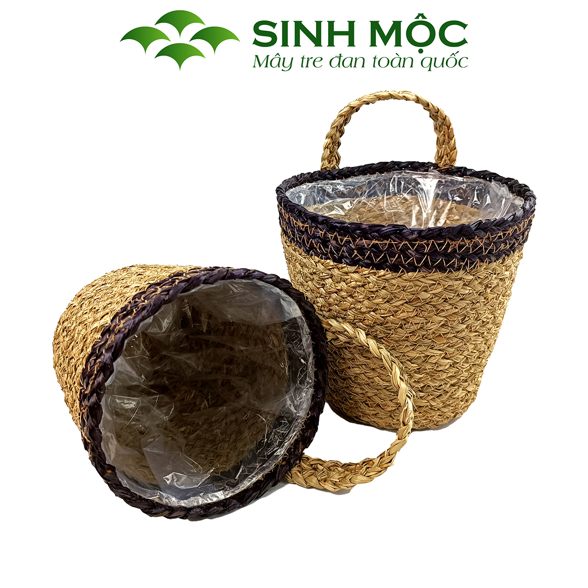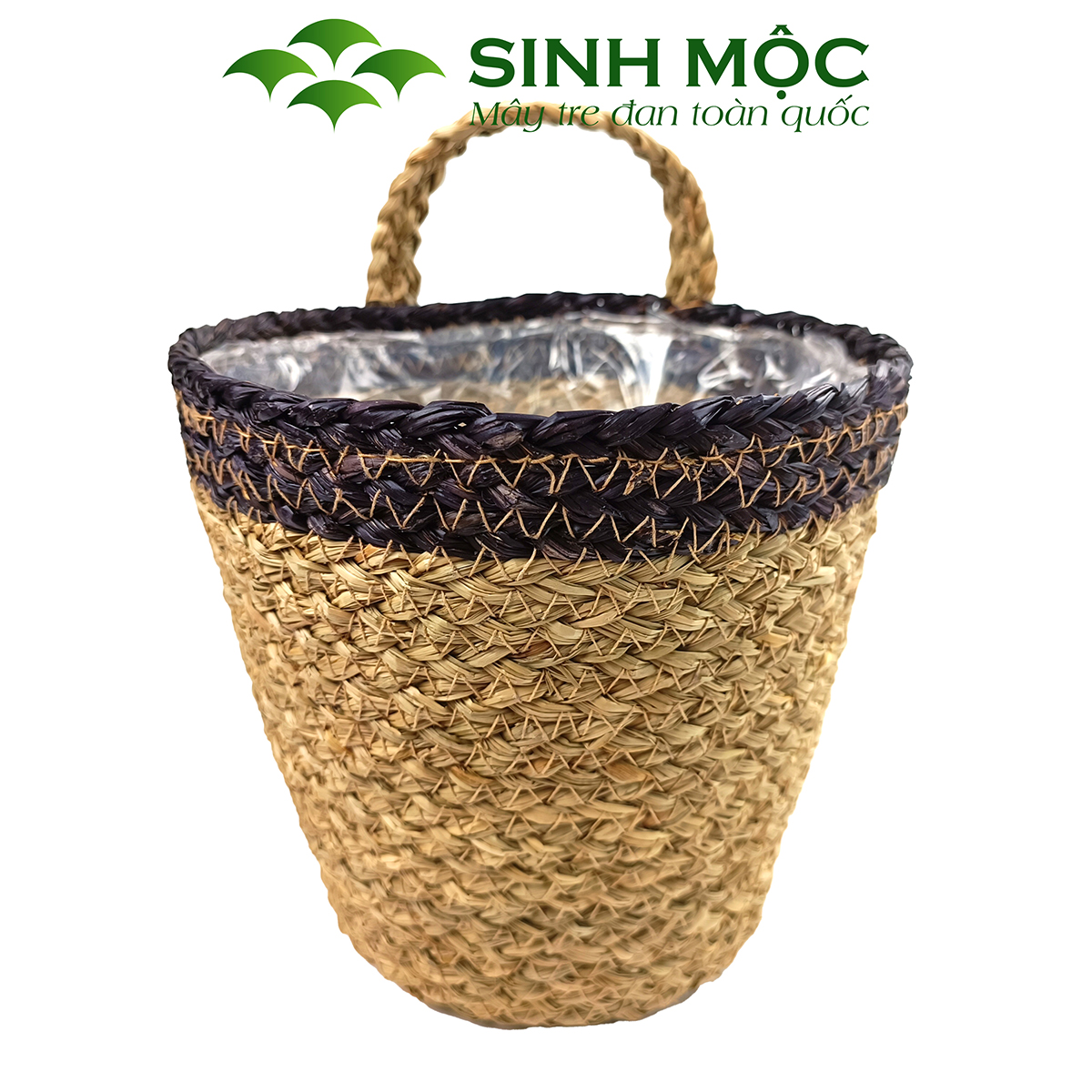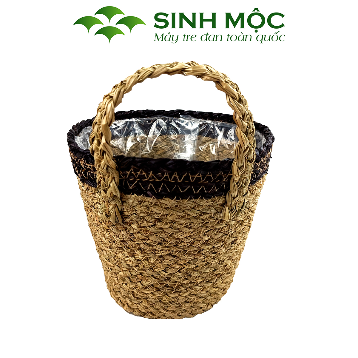 Giỏ hoa, giỏ trồng cây chất liệu cói có lót nilon Sinh Mộc - M1036
