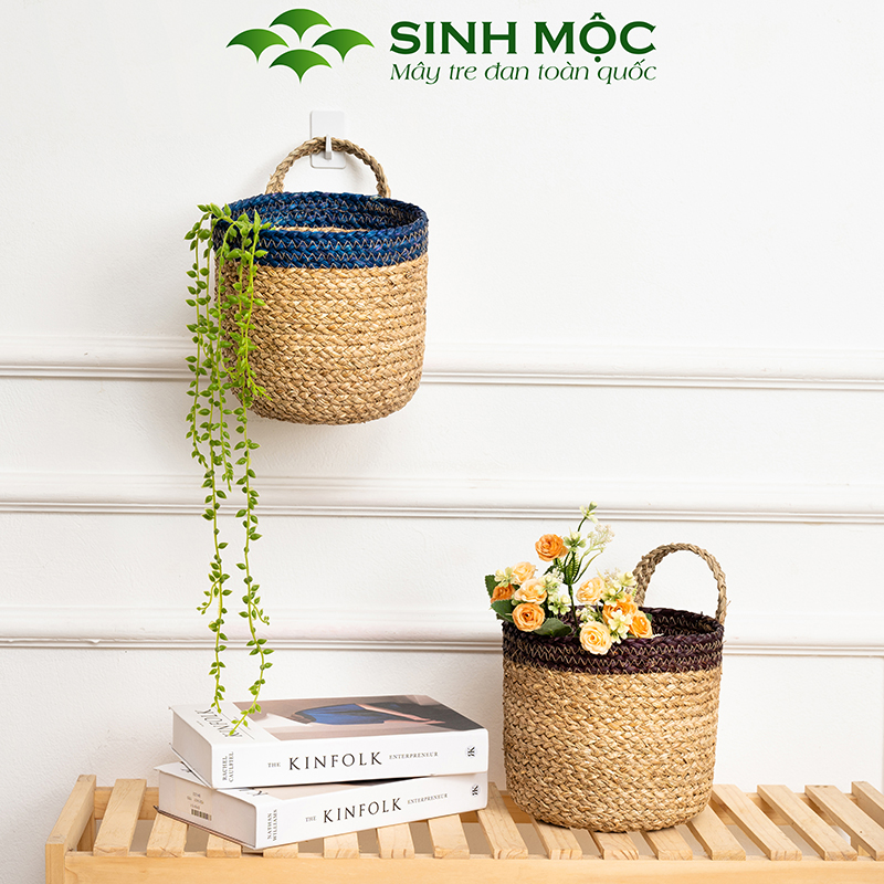 Giỏ cói, giỏ mây tre đan, giỏ cói trồng cây, Decor đựng đồ - M1005