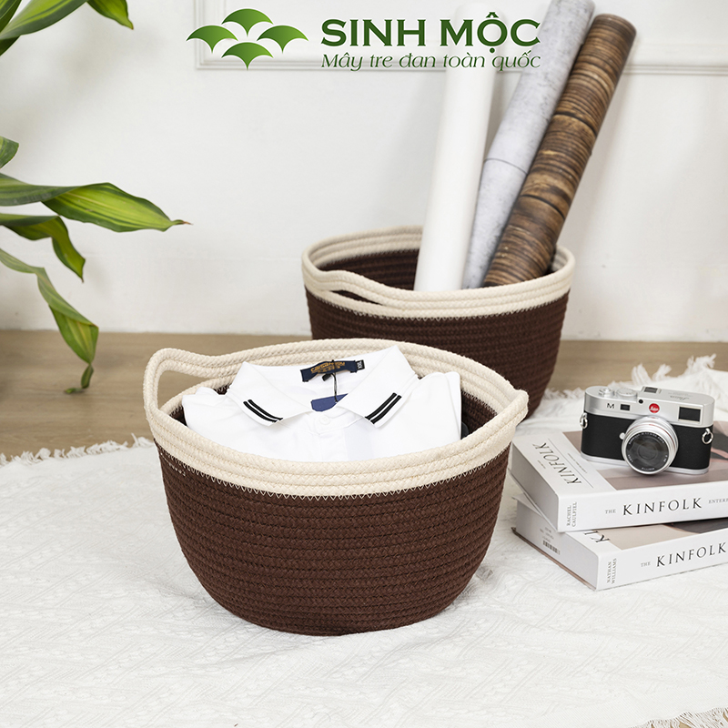 Giỏ đựng quần áo cao cấp, giỏ cotton đựng đồ, đựng đồ cá nhân Sinh Mộc - M1033