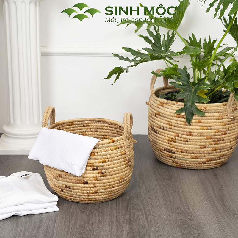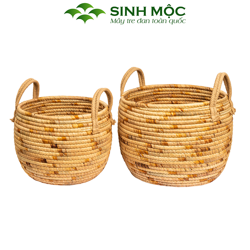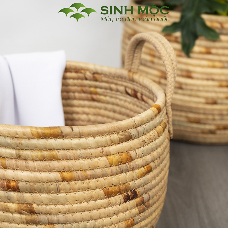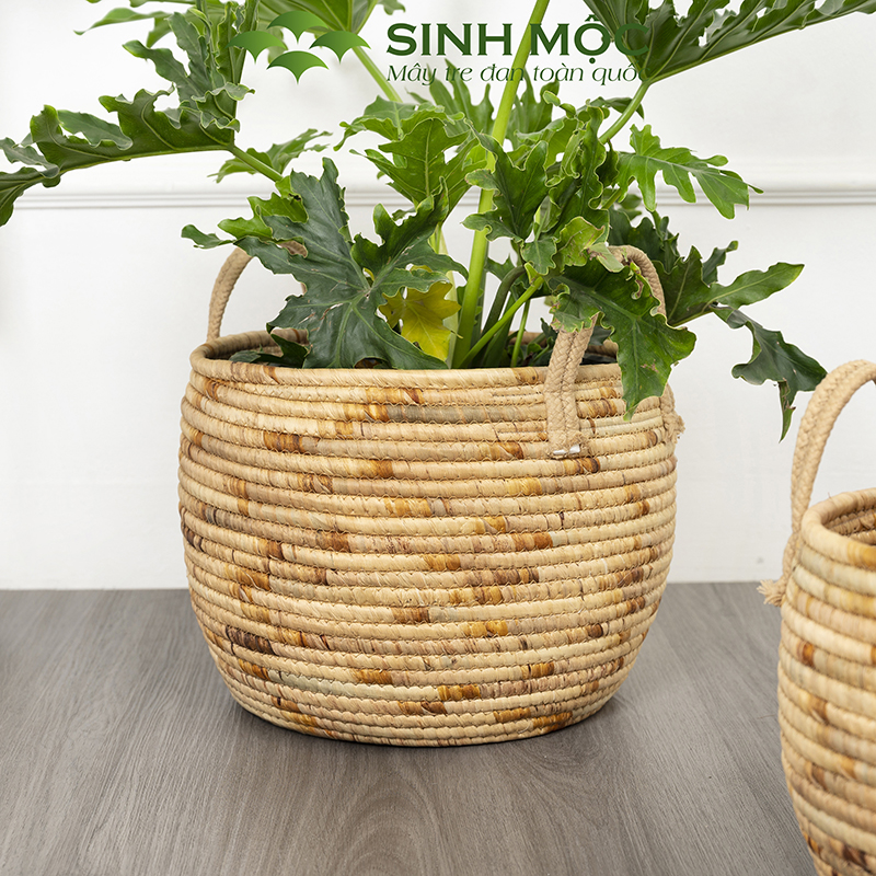 Giỏ lục bình có quai cao cấp, giỏ đa năng, decor lục bình, chậu cây trang trí Sinh Mộc - M1030