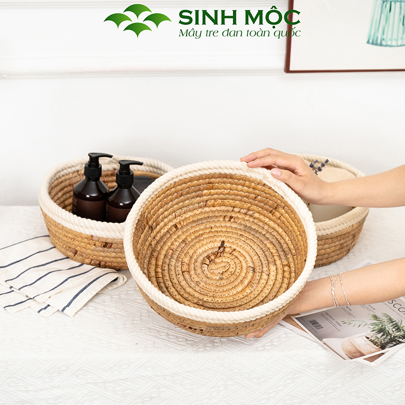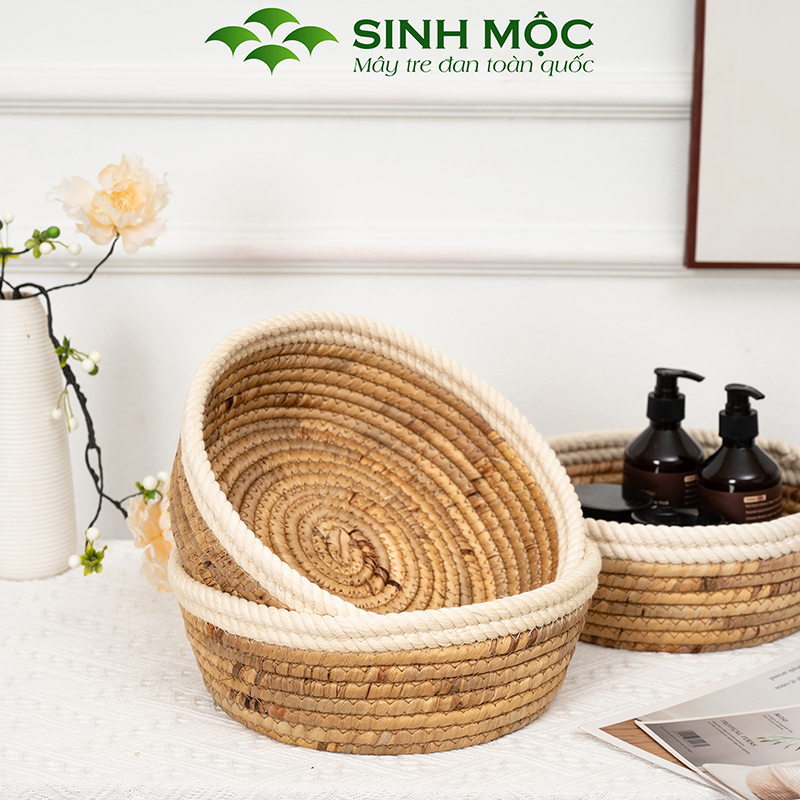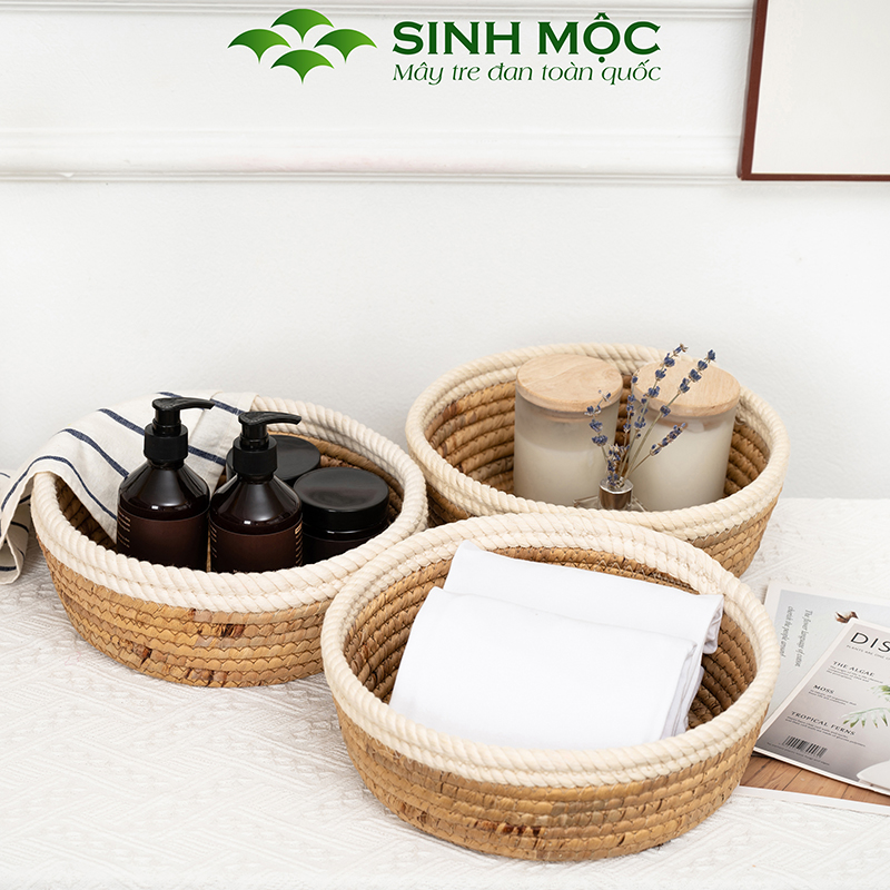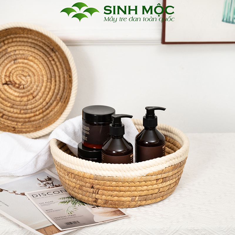 Khay lục bình miệng cotton, ổ mèo lục bình, khay decor đựng đồ cá nhân - M1001