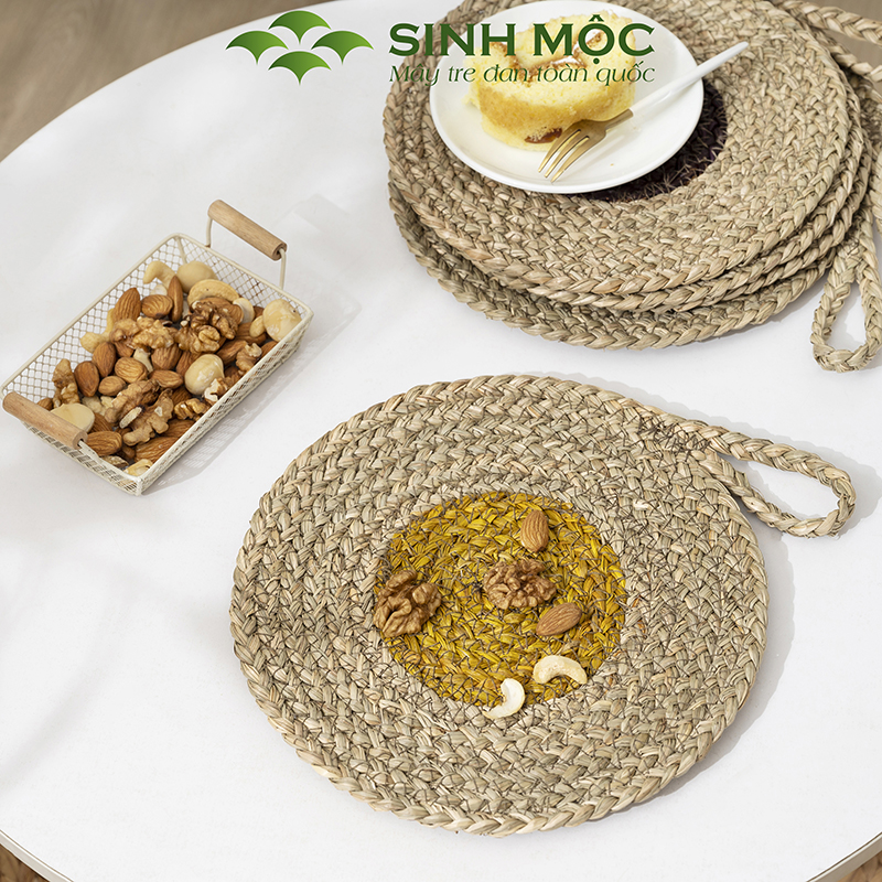 Tên hàng hóa: Miếng lót cói, tấm lót bàn ăn, tấm lót cói nhiều màu, miếng lót ly, lót nồi, decor trang trí bàn ăn Sinh Mộc - M2010