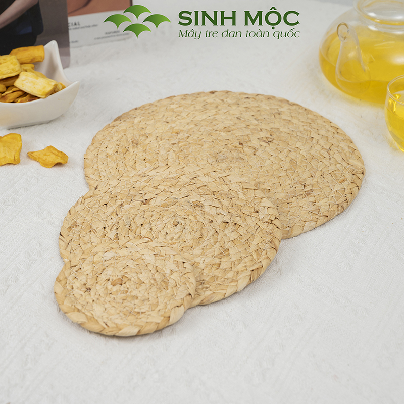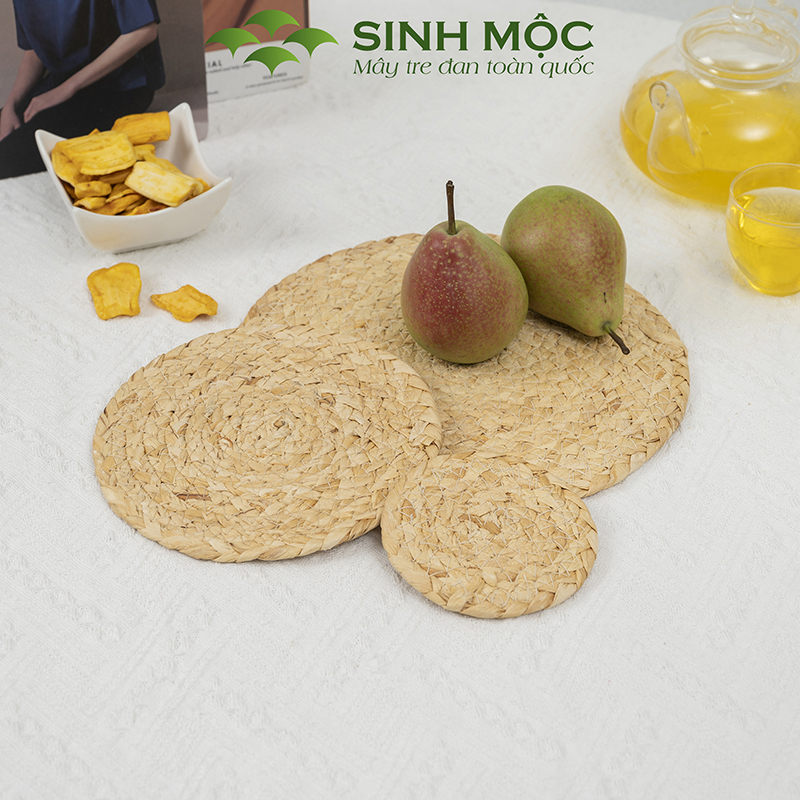 - Tấm lót lục bình tự nhiên tại Sinh Mộc dùng decor bàn ăn, bàn làm việc, lót cốc, lót ly, lót bát đĩa... tạo không gian thân thiện với thiên nhiên.