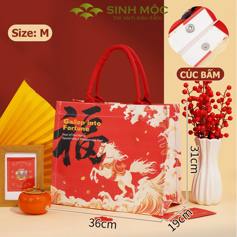 Túi xách tết Bính Ngọ 2026, túi canvas hình Ngựa, túi tote năm Ngọ - M3008
