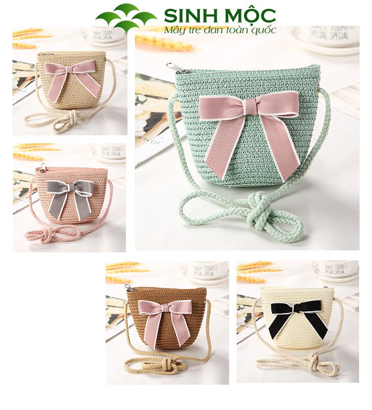 Túi cho bé, túi cói trẻ em có nơ Sinh Mộc - M3805