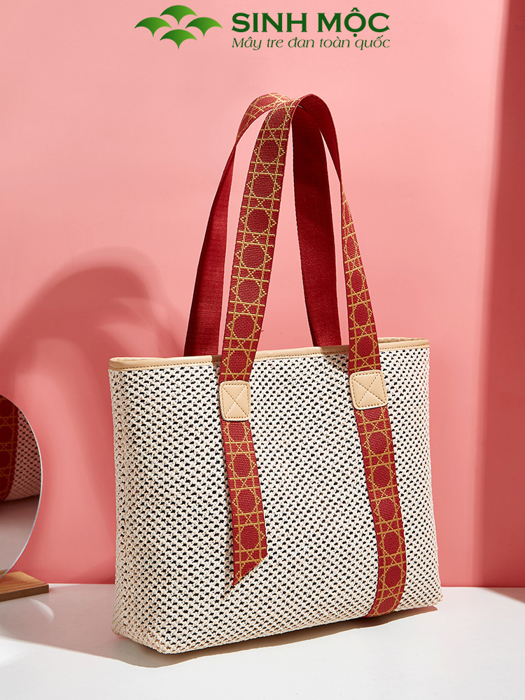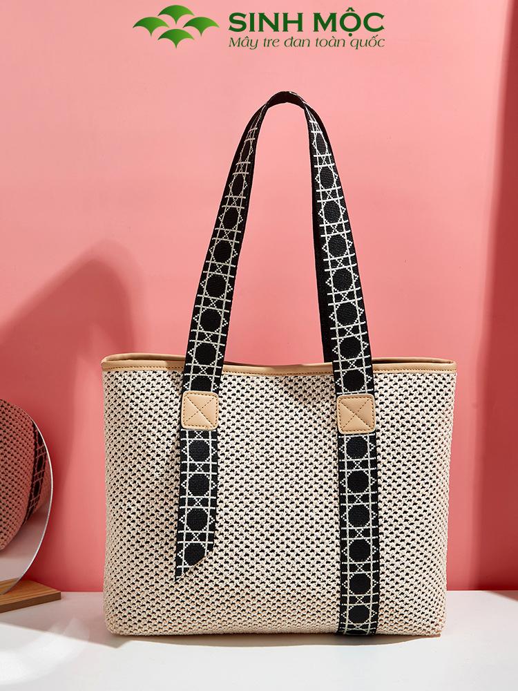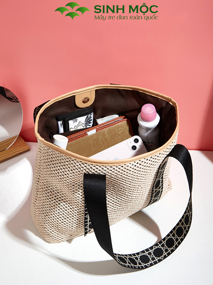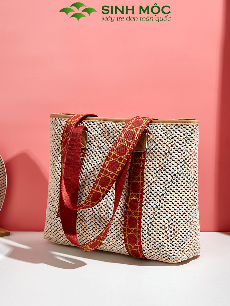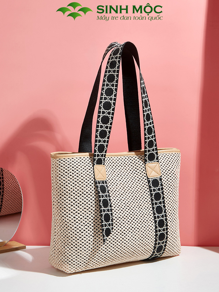 Túi xách nữ cao cấp, túi cói quai lệch, túi vintage Sinh Mộc - M3819