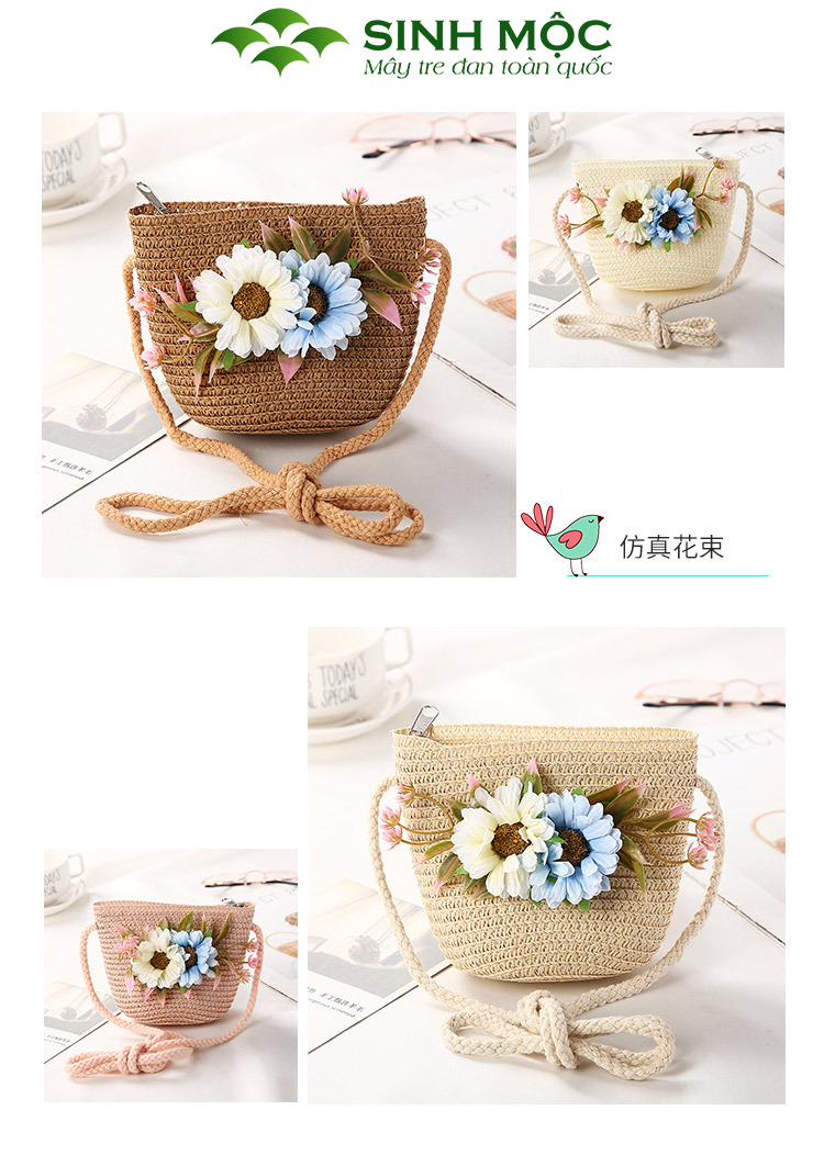 Tên hàng hóa: Túi cói trẻ em có hoa, túi cho bé Sinh Mộc - M3802