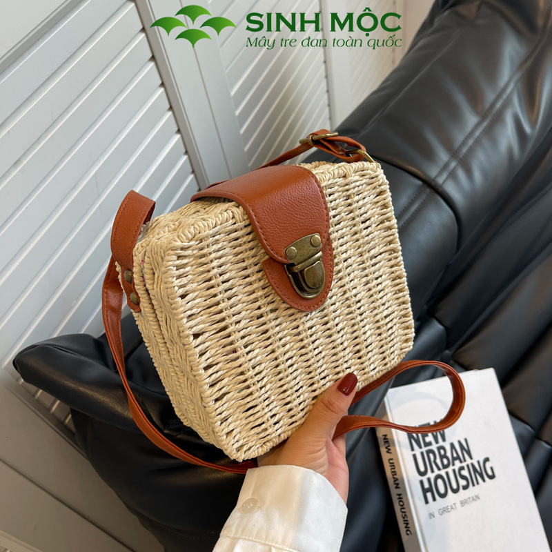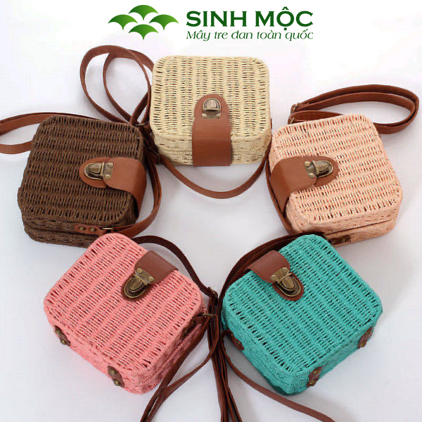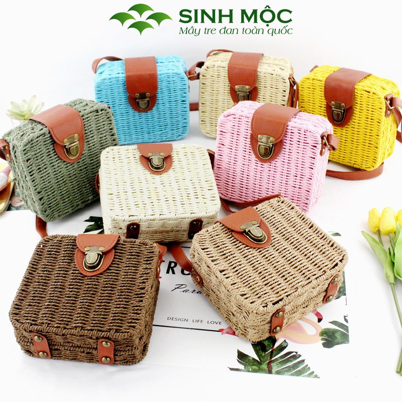 Túi xách hình vuông, túi cói giá rẻ cho nữ tại Sinh Mộc - M3806