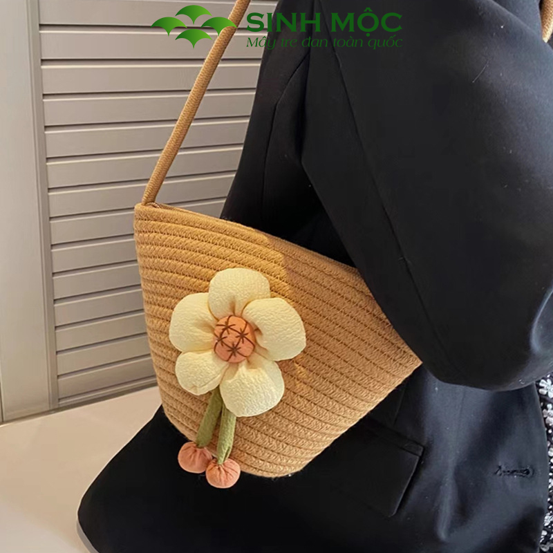Túi xách nữ cotton, túi đeo chéo Sinh Mộc - M3814 có kiểu dáng trẻ chung, năng động. bên trong có lót vải tiện dụng.