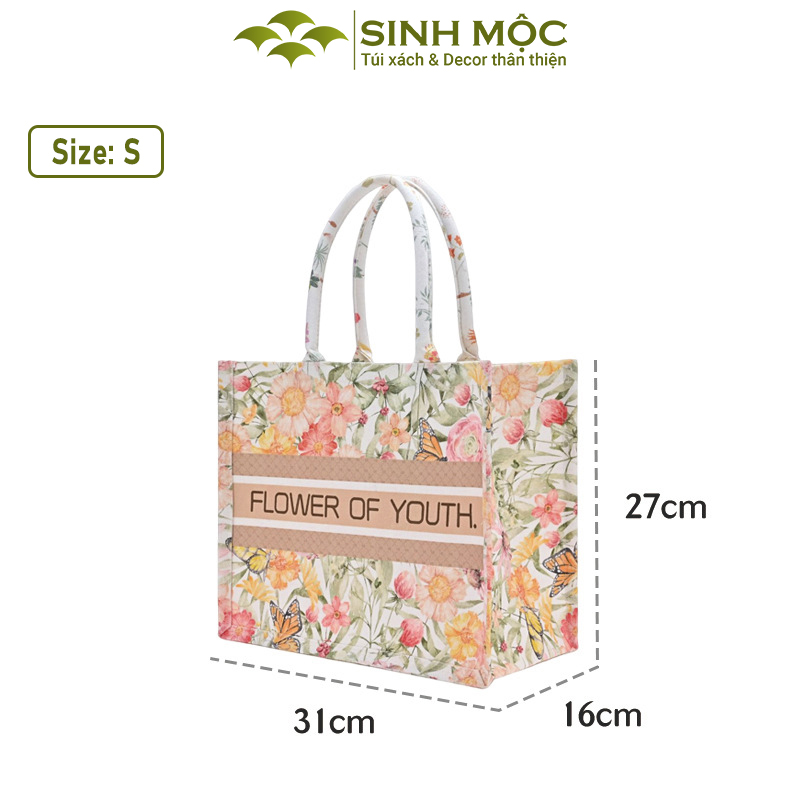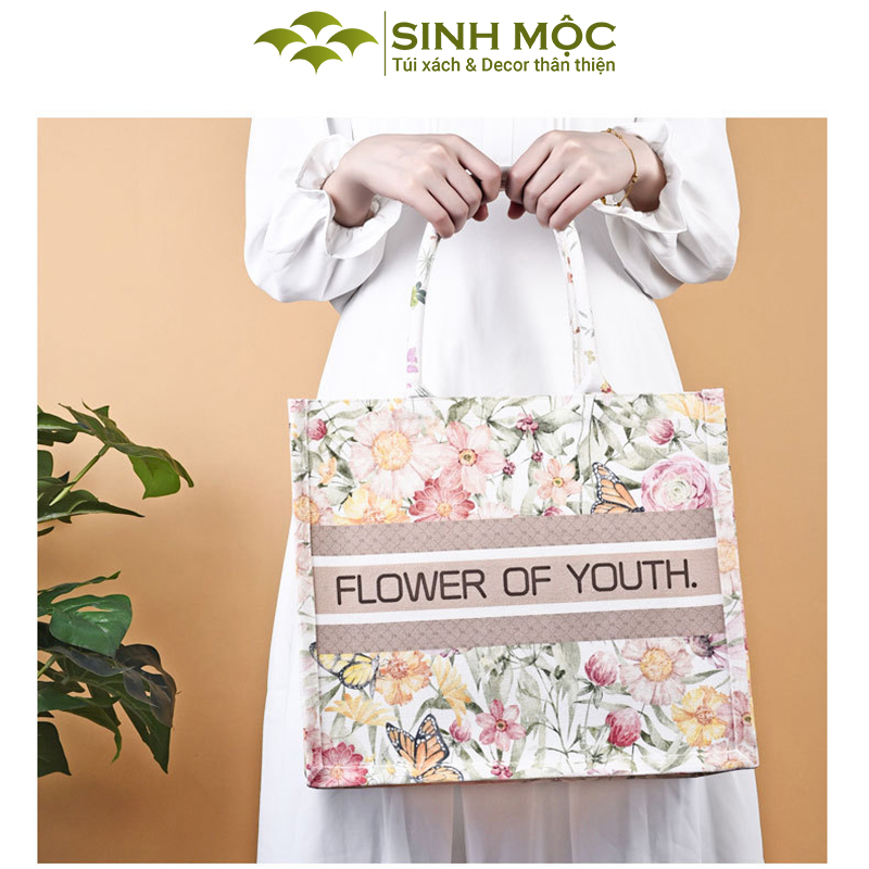 Túi tote, túi canvas, túi tote vải, túi hình hoa, Sinh Mộc - M3048