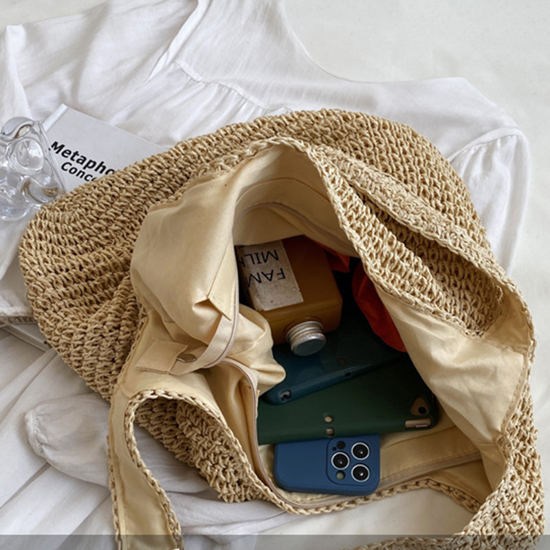 Túi cói đi biển, túi xách giả cói, túi liền quai Sinh Mộc - M3825