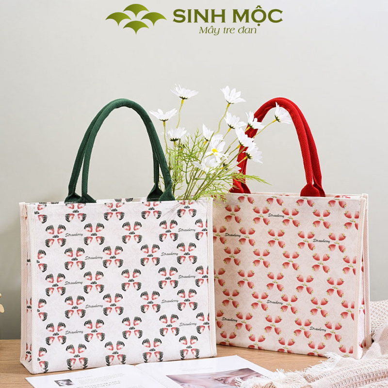 Chào mừng bạn đến với Sinh Mộc - nơi bạn có thể tìm thấy những sản phẩm túi tote thời trang đẳng cấp. Hôm nay, chúng tôi xin giới thiệu đến bạn chiếc Túi tote thời trang - M3054, một sản phẩm tuyệt vời với chất liệu vải cao cấp, khả năng chống nước và họa tiết quả dâu đáng yêu, có sẵn trong hai màu xanh và đỏ.