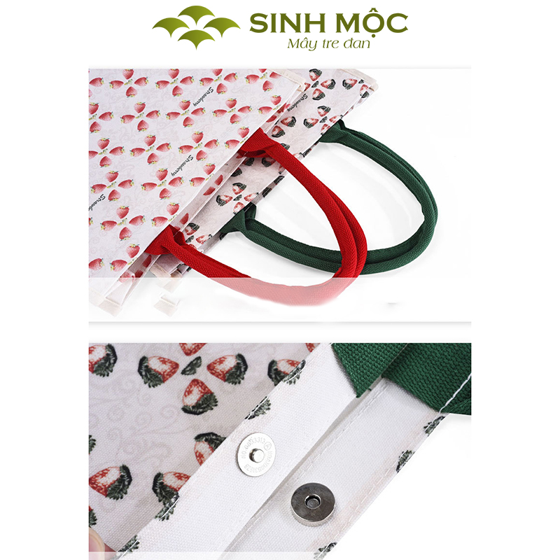 Túi canvas, túi họa tiết quả dâu, túi du lịch, túi tote, túi đi biển, túi vải canvas - M3055