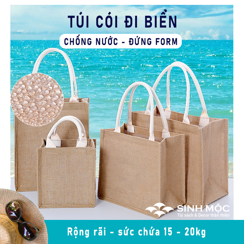 Tên hàng hóa; Túi cói đi biển, túi chống nước, túi đi biển, túi đay, Sinh Mộc - M3601