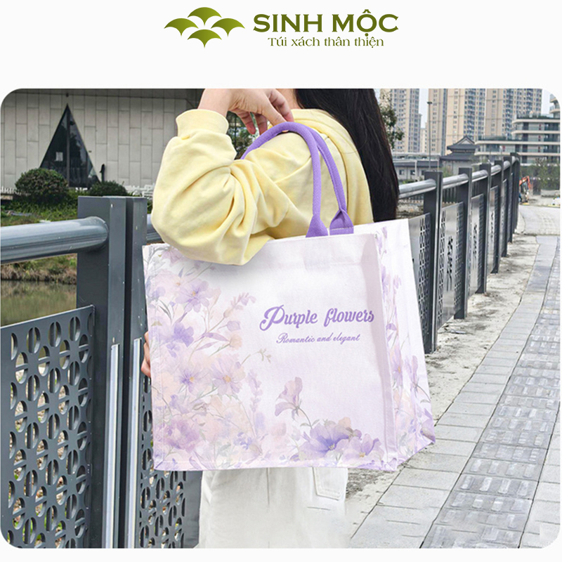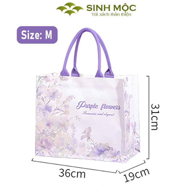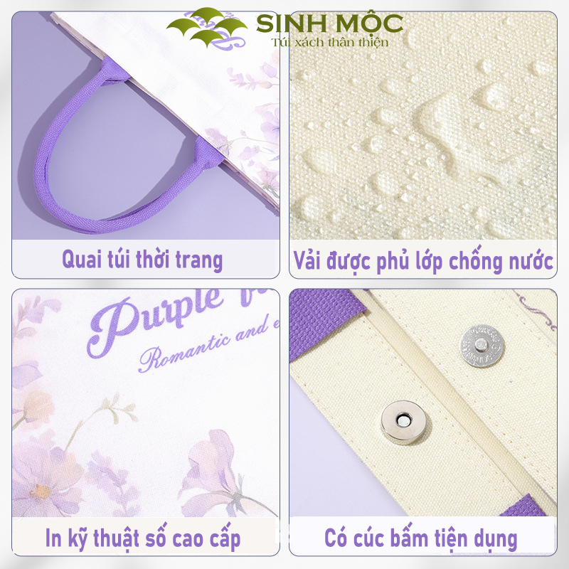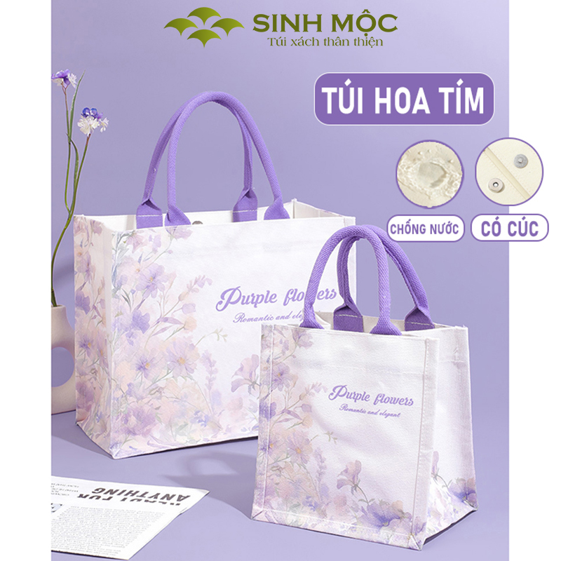 Túi vải canvas hoa tím chống nước thời trang nhẹ nhàng nữ tính – M3074