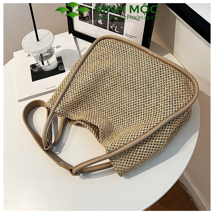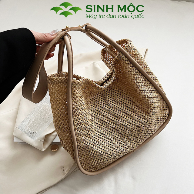 Túi xách nữ phong cách Vintage, túi cói giấy Sinh Mộc - M3816